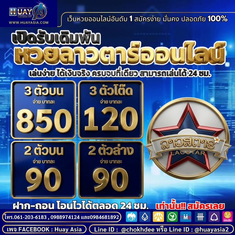 ทางเลือกใหม่ของคนรักการเสี่ยงโชค HUAYASIA บริการครบวงจร ระบบออโต้ ใช้ง่าย ปลอดภัย